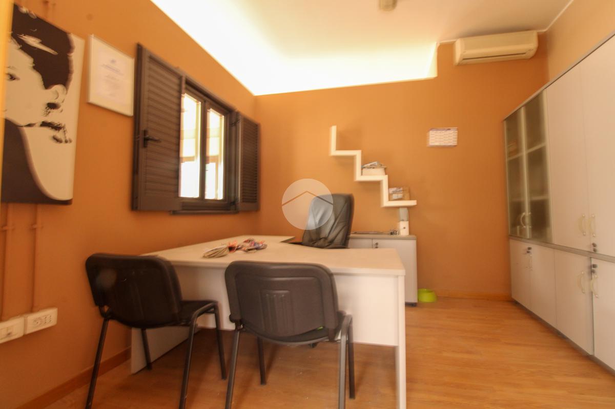 L'ufficio misura 85 metri quadrati ed è situato al piano terra di una palazzina condominiale che si sviluppa su sette livelli. La soluzione è attualmente divisa in due locali ed è dotata di un servizio igienico. L'ambiente è particolarmente luminoso grazie alla presenza di quattro grandi vetrine con affaccio esterno. L’immobile è munito dell’impianto di riscaldamento, dell’impianto elettrico e quello di illuminazione. Mentre l’impianto di condizionamento è presente solo in un locale. Inoltre, possiede la predisposizione del sistema di allarme. L’immobile, è servito dalla porta blindata ed è cablato. Il locale possiede una cantina seminterrata di ulteriori 10 metri quadrati circa.