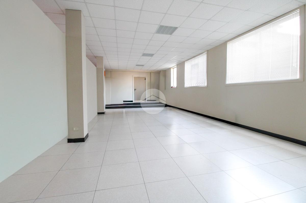 Il capannone proposto in locazione ha una superficie complessiva di circa 370 metri quadrati e si trova al piano terra e primo di una struttura condominiale.