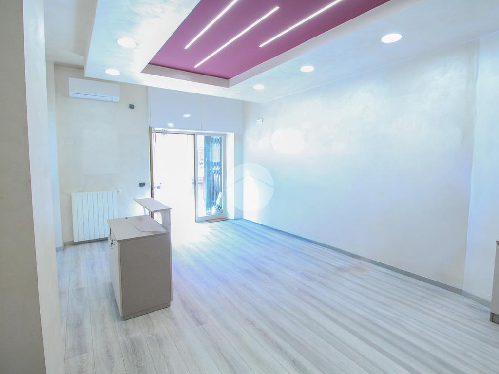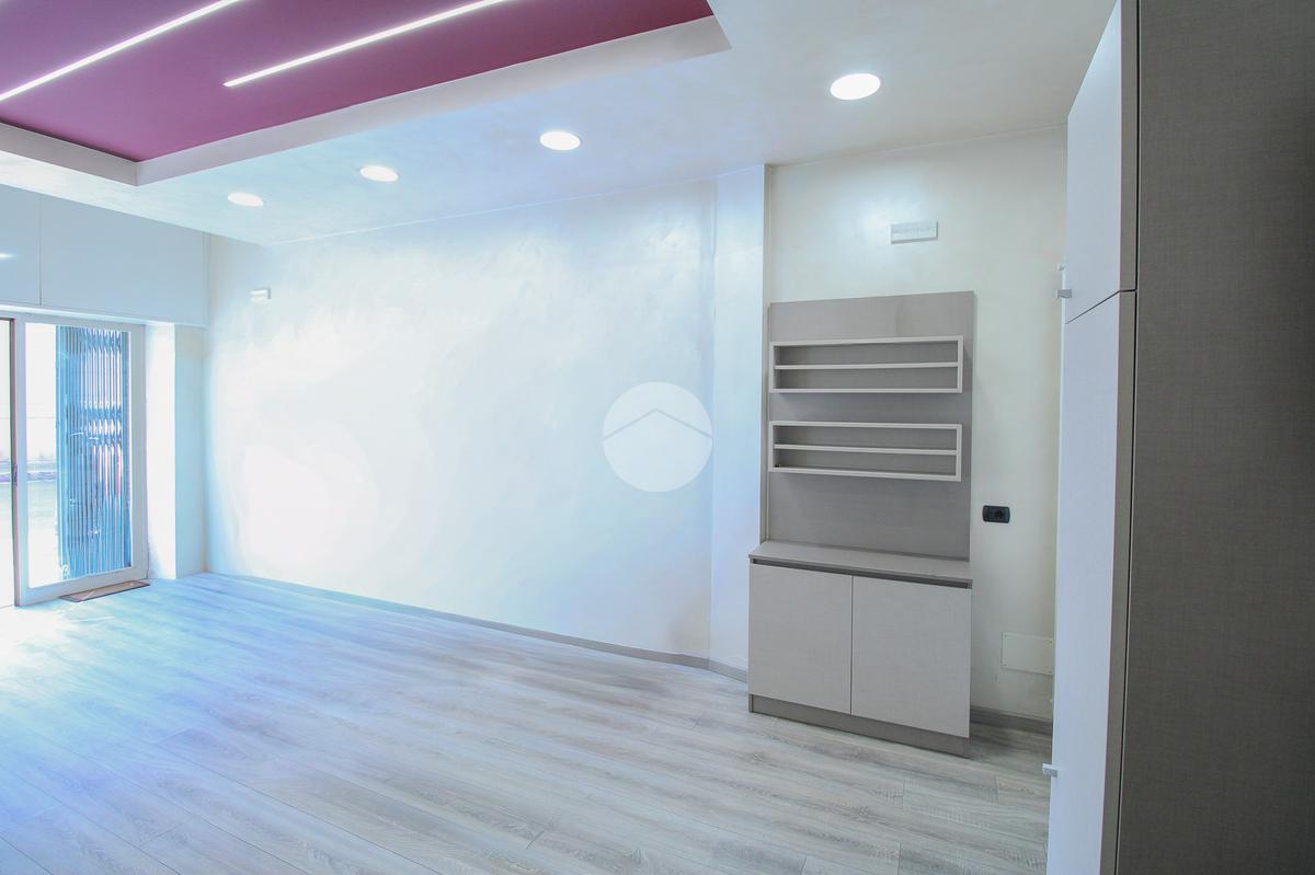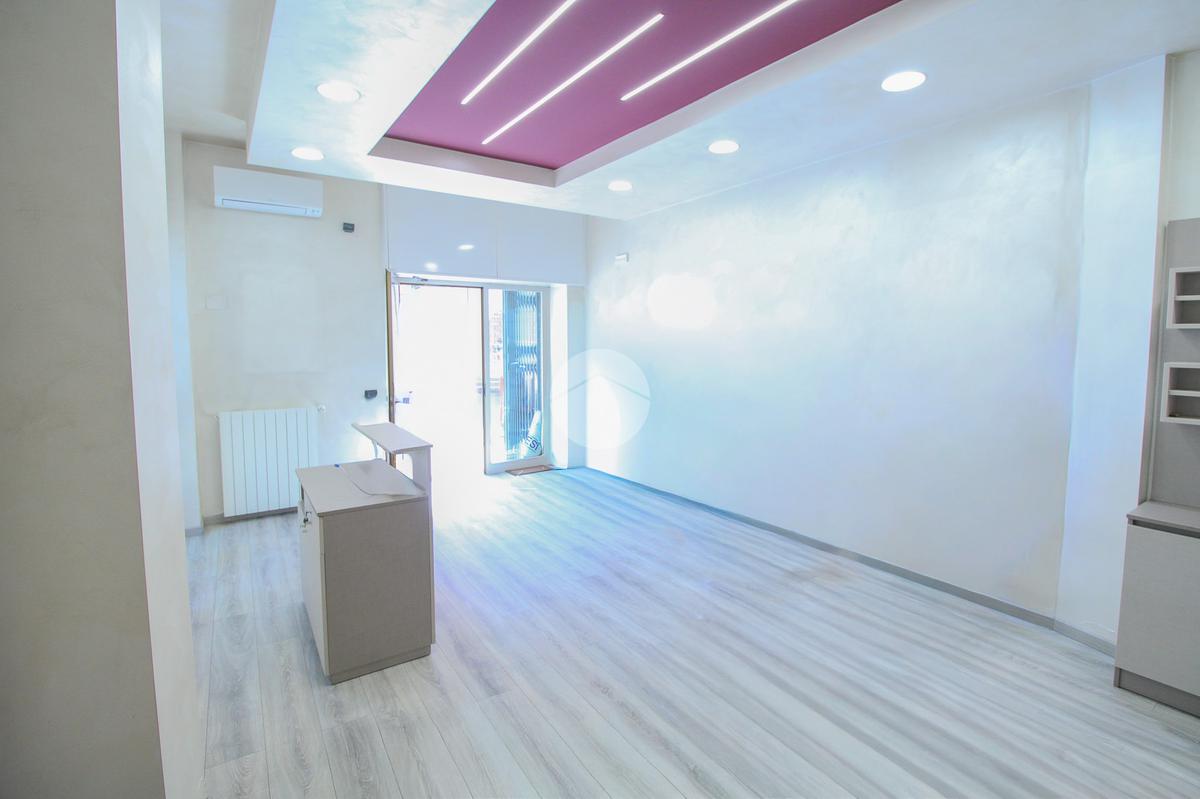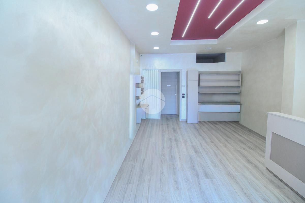 Il negozio misura 60 metri quadrati ed è situato al piano terra di una palazzina condominiale. La soluzione è attualmente divisa in due locali ed è dotata di un servizio igienico. L'ambiente è particolarmente luminoso grazie alla presenza di due grandi vetrine. La struttura è servita dell’impianto di riscaldamento e di condizionamento, l’impianto elettrico e di illuminazione. L’immobile è dotato del sistema d’antincendio a idranti, è inoltre controsoffittato e cablato.