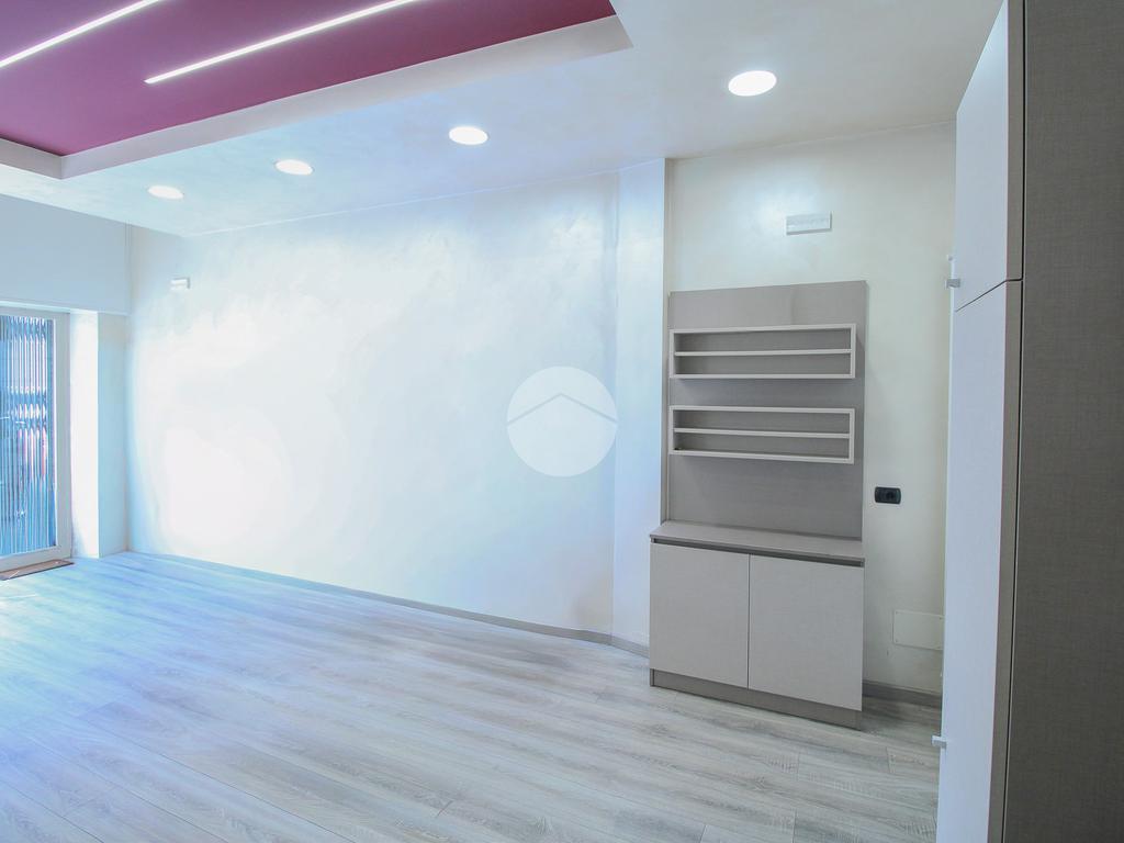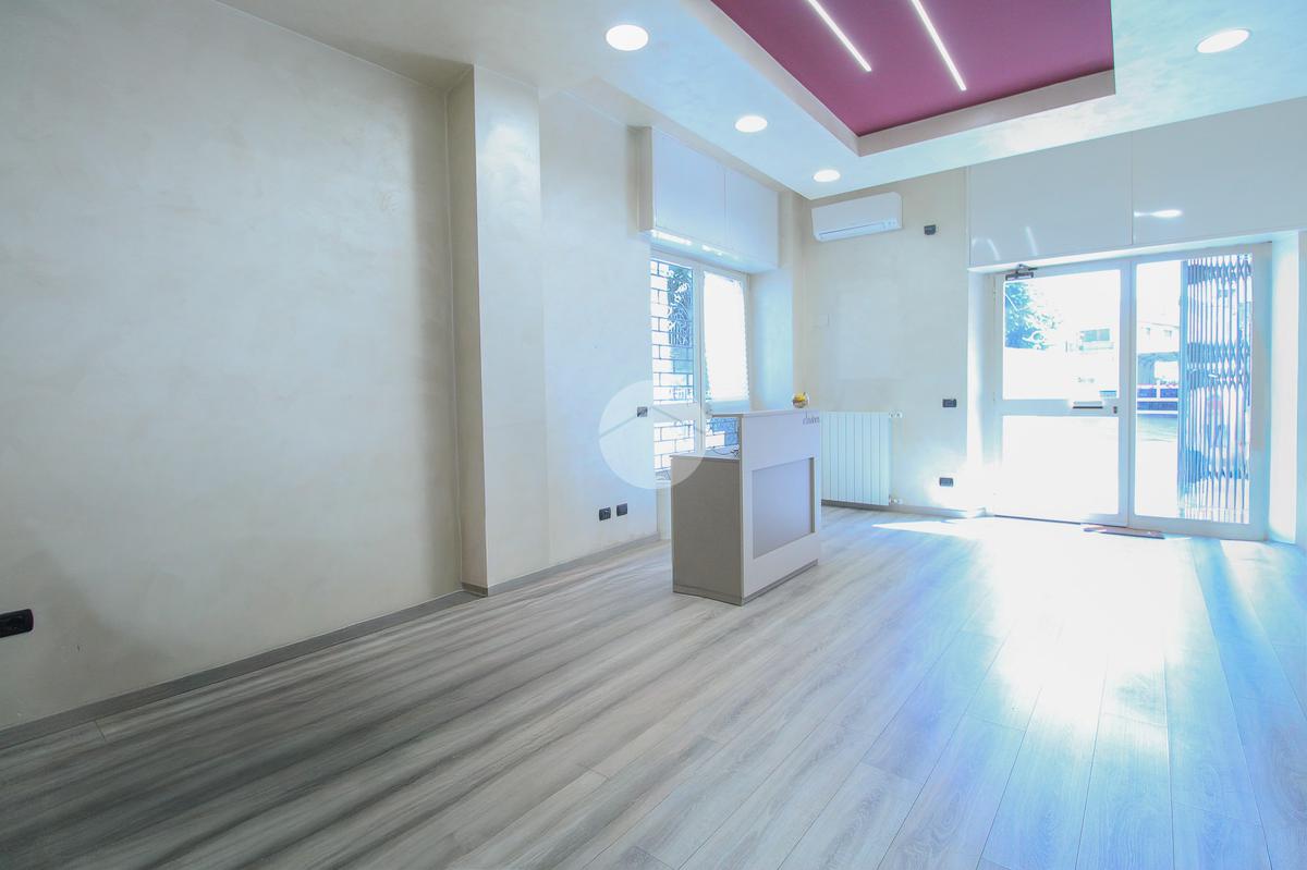 L'ufficio misura 60 metri quadrati ed è situato al piano terra di una palazzina condominiale. La soluzione è attualmente divisa in due locali ed è dotata di un servizio igienico. L'ambiente è particolarmente luminoso grazie alla presenza di due grandi vetrine. La struttura è servita dell’impianto di riscaldamento e di condizionamento, l’impianto elettrico e di illuminazione. L’immobile è dotato del sistema d’antincendio a idranti, è inoltre controsoffittato e cablato.