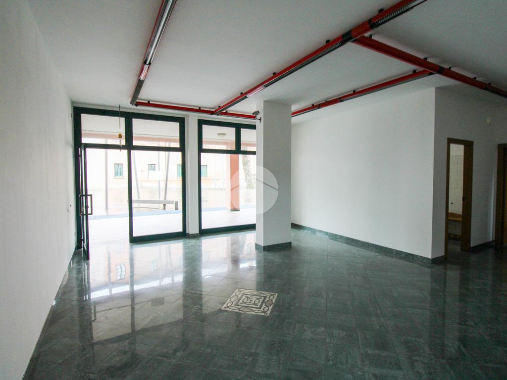 L'ufficio misura 75 metri quadrati ed è situato al piano terra di una palazzina che si sviluppa su tre livelli. La soluzione è divisa in due locali ed è dotata di un servizio igienico privato. L'ambiente è particolarmente luminoso grazie alla presenza di tre grandi vetrine. Il locale possiede la predisposizione per l'impianto di riscaldamento. Inoltre, è servito dall'impianto elettrico e quello di illuminazione. L'immobile è cablato e presenta la canna fumaria.