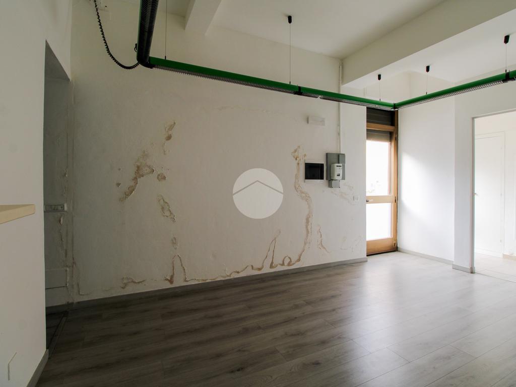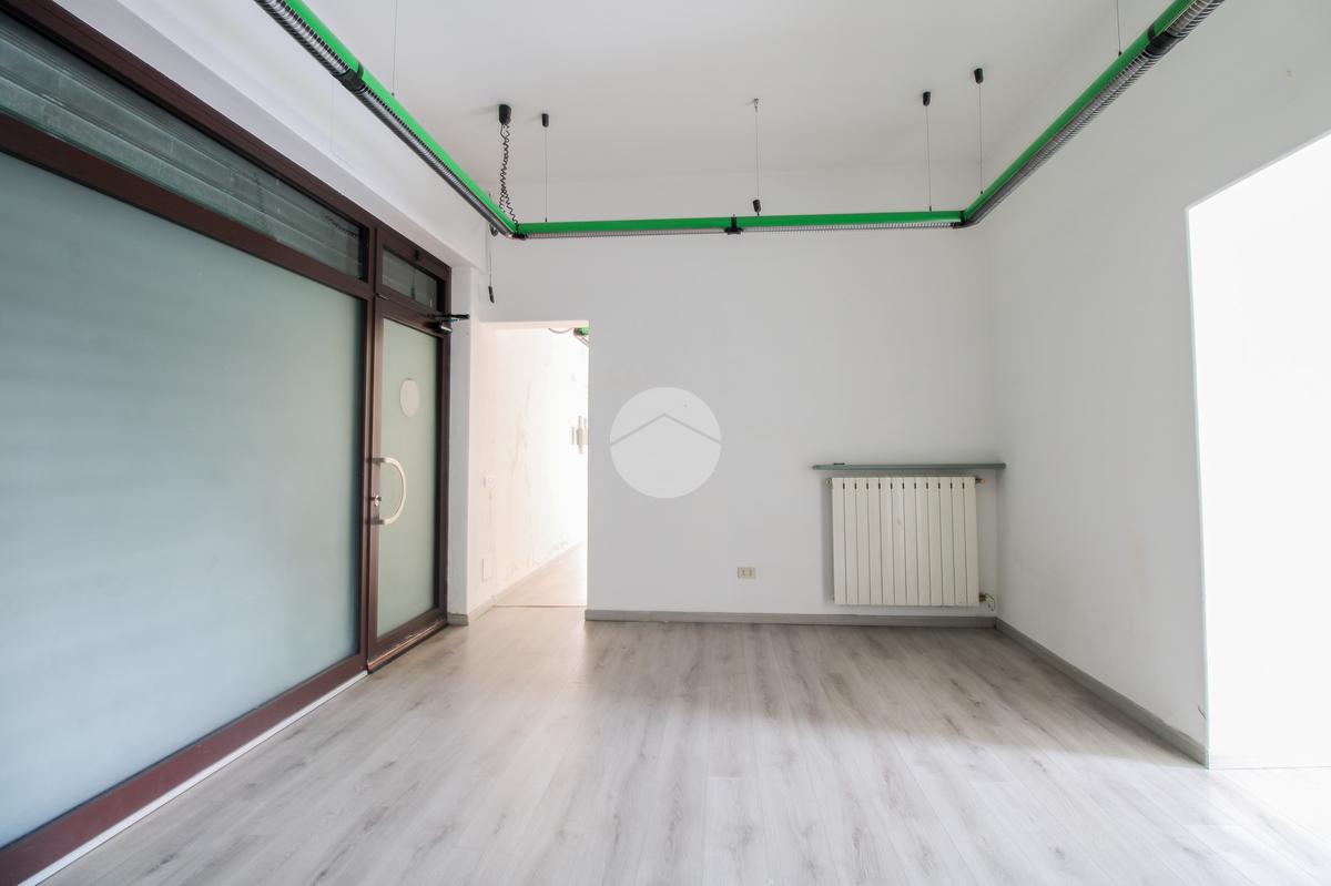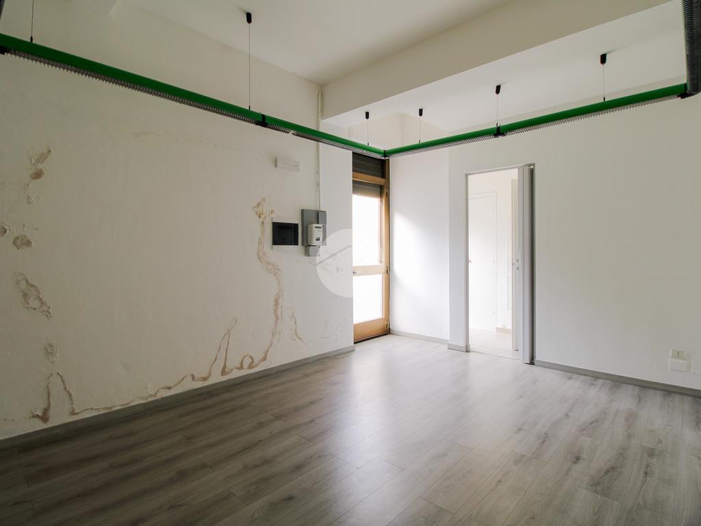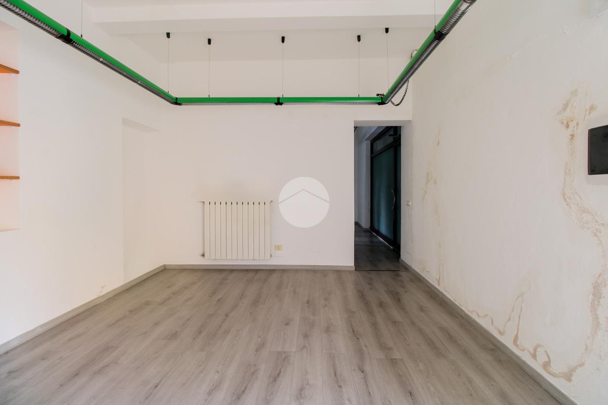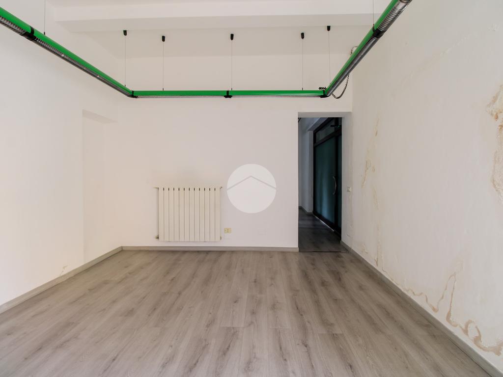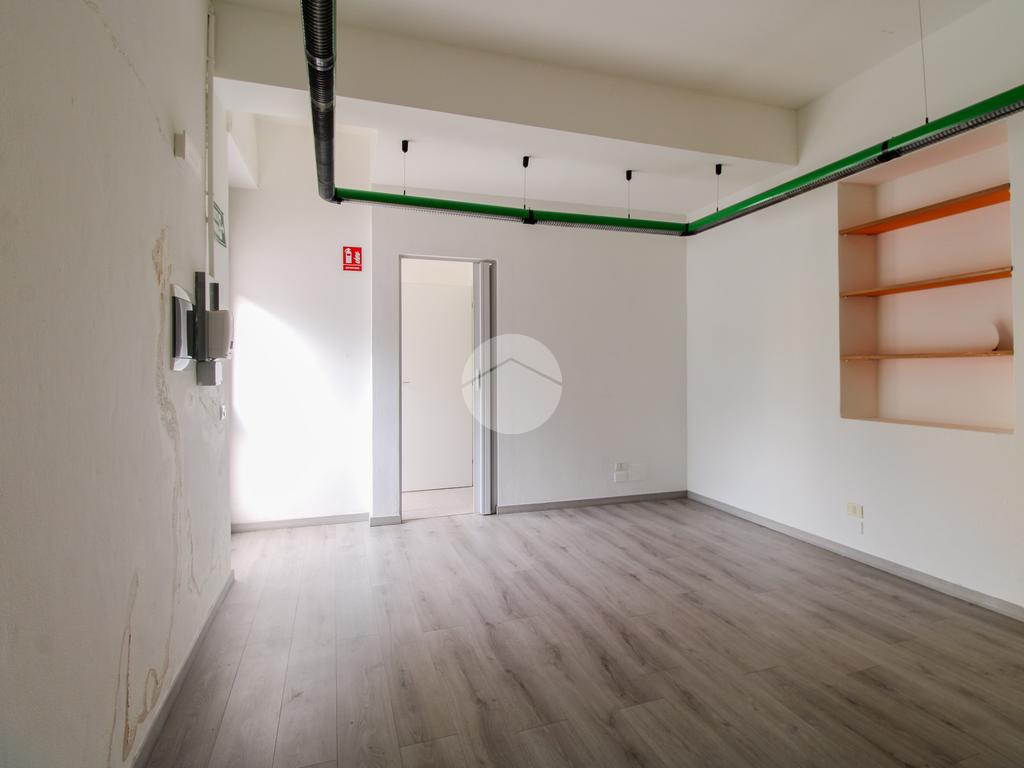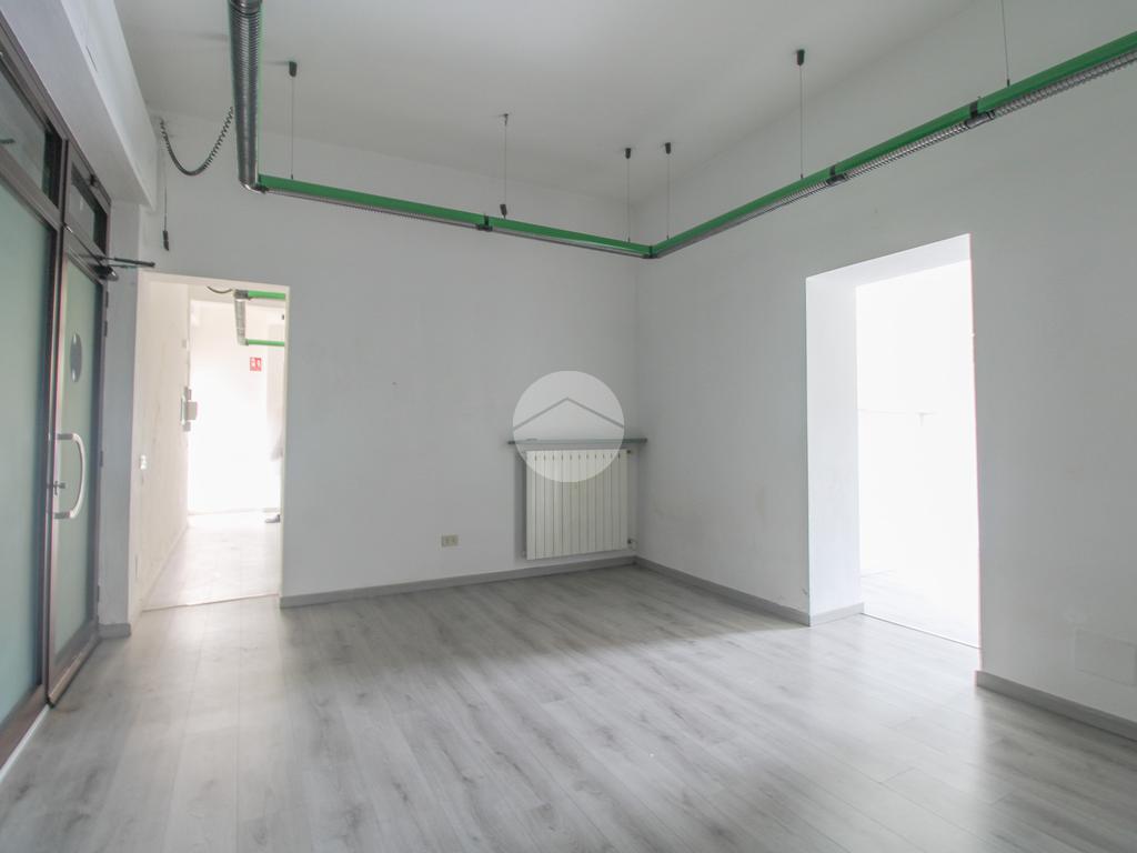 L’ufficio misura 75 metri quadrati ed è situato al piano terra. La soluzione si presenta attualmente come un open space ed è dotata di tre servizi igienici. L’ambiente risulta particolarmente luminoso grazie alla presenza di una grande vetrina. La struttura è provvista dell’impianto di riscaldamento, dell’impianto elettrico e dell’impianto di illuminazione, è dotata di saracinesca automatica ed è inoltre cablata.