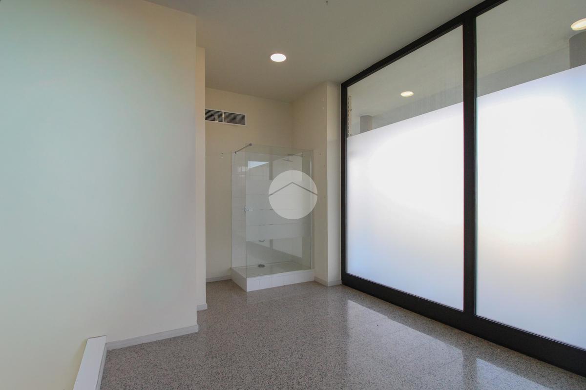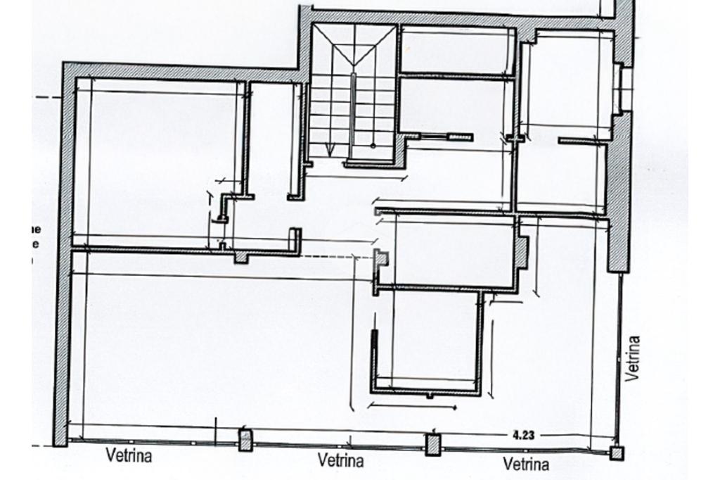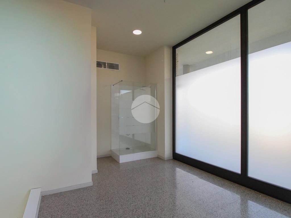 L’ufficio misura complessivamente 285 metri quadrati e si sviluppa su due livelli. La soluzione al piano terra misura 100 metri quadrati e ed è composto da quattro locali, è servita di quattro servizi igienici, con spogliatoio. Al piano seminterrato della struttura troviamo 185 metri quadrati e si sviluppa in due locali. L’ ambiente è particolarmente luminoso grazie alla presenza di quattro grandi vetrine. L’immobile è dotato dell’impianto di riscaldamento, l’impianto di condizionamento, dell’impianto elettrico e dell’impianto di illuminazione, è dotato anche del sistema di antincendio a idranti. È inoltre cablato e completamente controsoffittato.