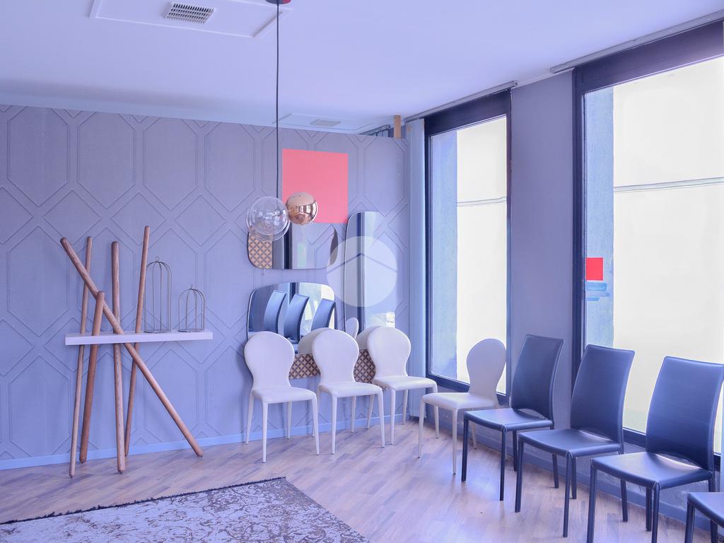 Il negozio misura 110 metri quadrati ed è situato al piano terra di una palazzina condominiale. La soluzione è attualmente divisa in tre locali ed è dotata di un servizio igienico. L'ambiente è particolarmente luminoso grazie alla presenza di sette grandi vetrine. L’immobile è dotato di circa 20 metri quadrati di uffici, ove è presente anche l’impianto di condizionamento. La struttura è munita dell’impianto elettrico, dell’impianto di illuminazione, dell’impianto di allarme e dell’impianto di antincendio a idranti. Il fabbricato è inoltre cablato ed è fornito della canna fumaria. Inoltre possiede un’autorimessa di circa 25 metri quadrati situata al piano terra.
