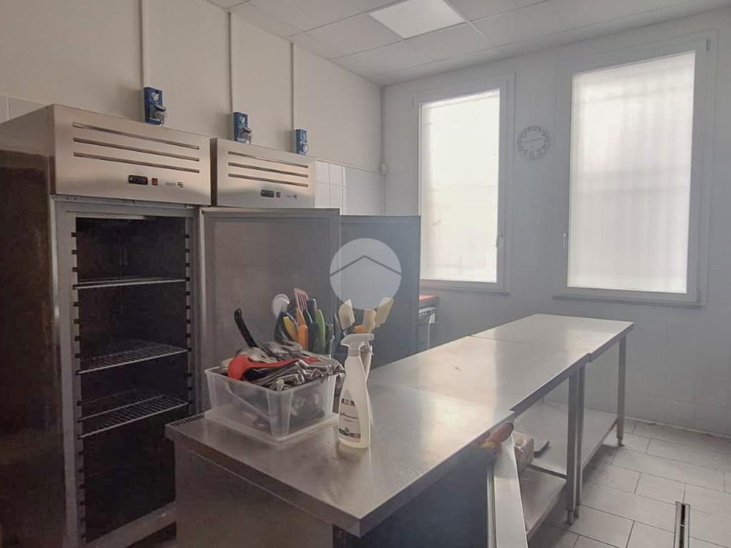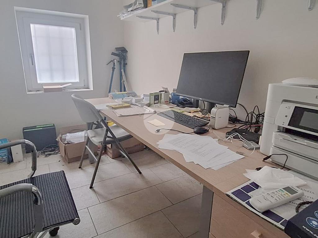 L’ufficio misura 120 metri quadrati ed è situato al piano terra di una palazzina commerciale che si sviluppa su 3 piani. Adiacenti al locale è presente una cucina e ufficio di circa 70 metri quadrati, e ulteriori 10 mq adibiti a deposito. La soluzione, interamente controsoffittata, è attualmente divisa in quattro locali ed è dotata di due servizi igienici, con spogliatoio. L'ambiente è particolarmente luminoso grazie alla presenza di tre grandi vetrine. La struttura è munita dell’impianto di riscaldamento, dell’impianto di condizionamento, dell’impianto elettrico e dell’impianto di illuminazione. Nell’immobile è presente l’impianto di allarme con videosorveglianza, il sistema di antincendio a idranti, la canna fumaria con ventilazione meccanica e aspirazione fumi ed è inoltre cablato.
