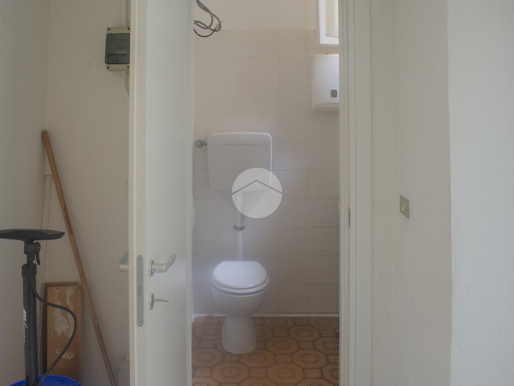 L'ufficio misura 65 metri quadrati ed è situato al piano terra di una palazzina condominiale che si sviluppa su due livelli. La soluzione è attualmente divisa in tre locali ed è dotata di un servizio igienico. La struttura è dotata della canna fumaria. L'ambiente è particolarmente luminoso grazie alla presenza di due grandi vetrine. L’immobile possiede impianto elettrico e ha la predisposizione all’impianto di illuminazione.