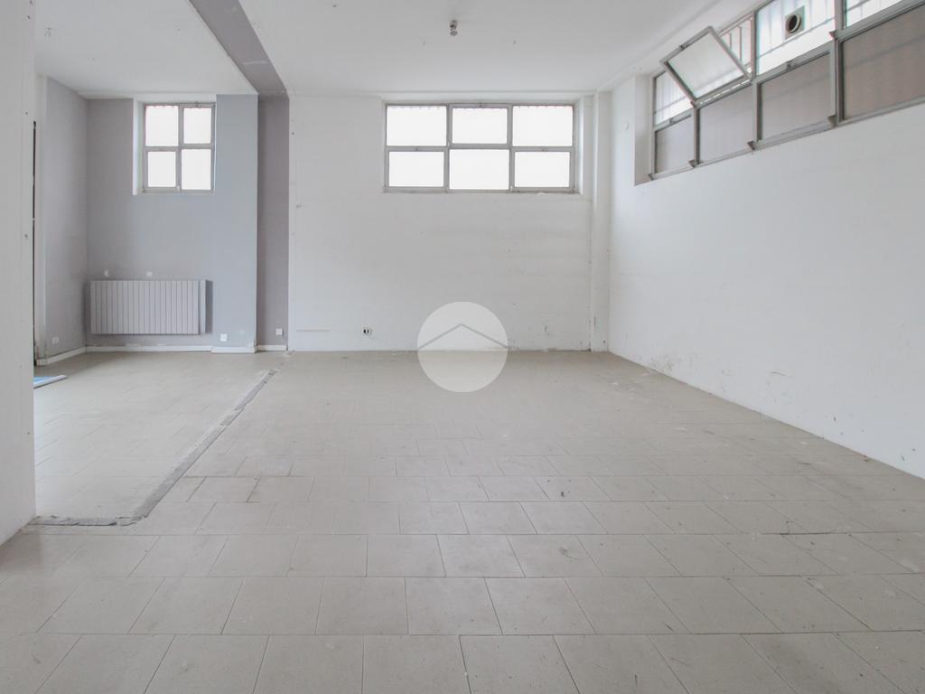 L’ufficio misura 65 metri quadrati, è situato al piano terra di una struttura che si sviluppa su sei livelli. È attualmente un open space è dotato di un servizio igienico. Al piano seminterrato, accessibile tramite scala interna, troviamo 110 metri quadrati di magazzino. L'ambiente è luminoso grazie alla presenza di due grandi vetrine. La struttura è munita dell’impianto di riscaldamento e dell’impianto elettrico ed è inoltre cablato.